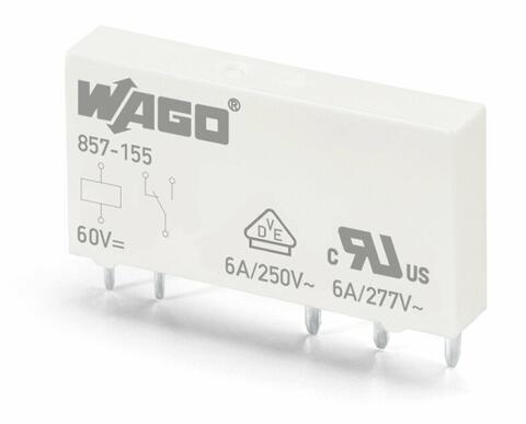 Базовое реле; Номинальное входное напряжение: 60 В пост.тока; 1 перекл. контакт; Предельный длительный ток: 6 А; Ширина модуля: 5 мм; 15 мм высотой