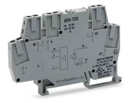 Модуль оптопары; Номинальное входное напряжение: 24 В пост. тока; Диапазон выходного напряжения: 0 - 24 В пост.тока; Предельный длительный ток: 5 А; 3-проводное соединение/сторона низкого напряжения; Ширина модуля: 6 мм; серые
