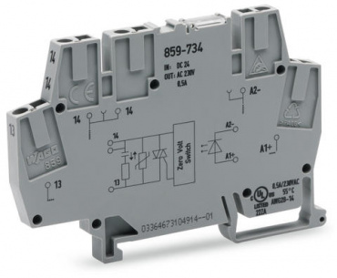 Модуль оптопары; Номинальное входное напряжение: 24 В пост. тока; Диапазон выходного напряжения: 24 - 260 В перем.тока; Предельный длительный ток: 0,5 А; 2-проводное подключение; коммутация с переходом через ноль; Красный индикатор состояния; Ширина модул